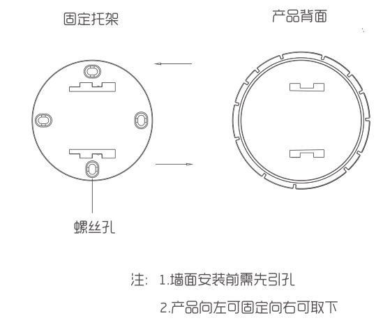 1、 (吸墙式安装) 根据旋钮遥控器的托架和需安装的位置,确定3、用十字盘头自攻螺钉将旋钮遥控器的托架固定到墙面;