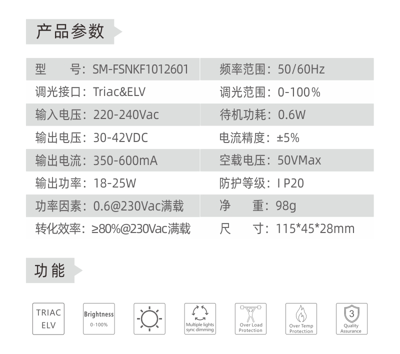 上一条: 15-24W 300mA 45-84VDC 220-240Vac 可控硅深度调光驱动电源