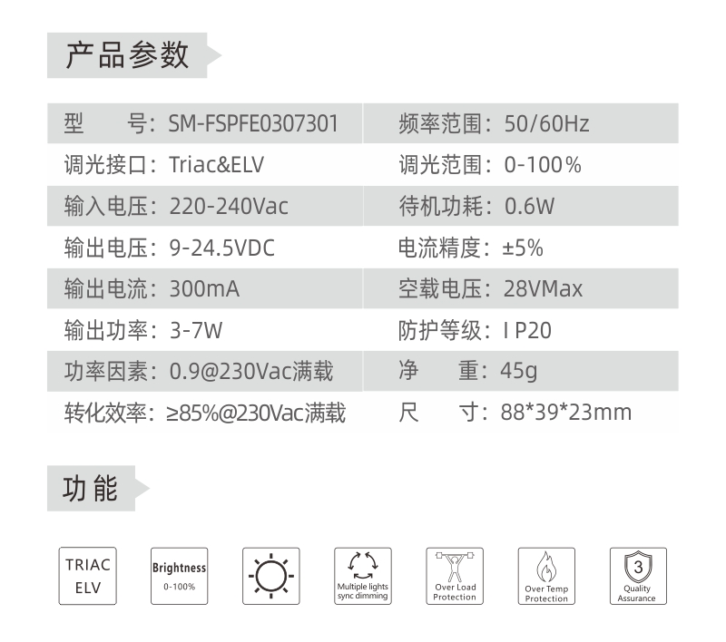 上一条: 15W 200-350mA 25-40VDC 220-240V 前后沿可控硅无频闪恒流切相调光电源