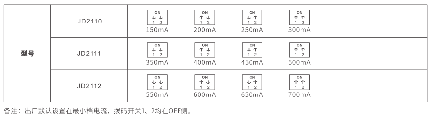 输出电流:150-300mA(50mA/step)