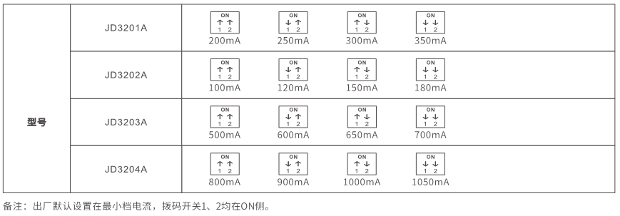 输出电流:200-350mA(50mA/step)