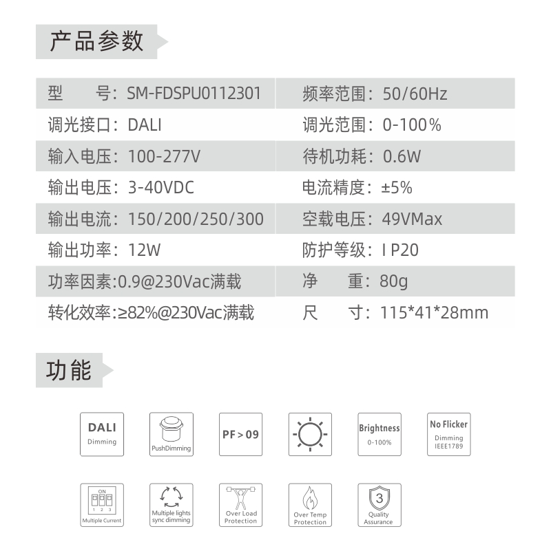 输入电压:100-277Vac 50/60Hz输出功率:1-12W