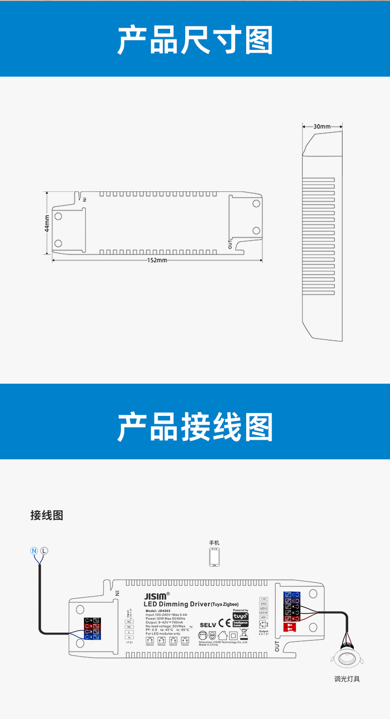 涂鸦蓝牙mesh智能调光驱动 语音控制 手机直连 高PF认证调光电源