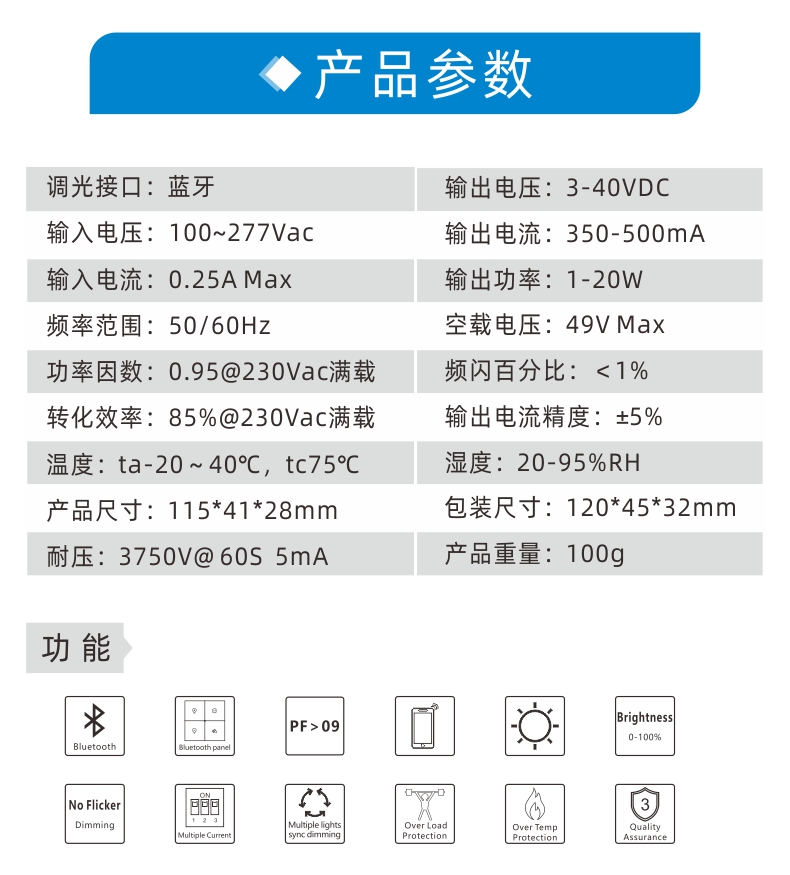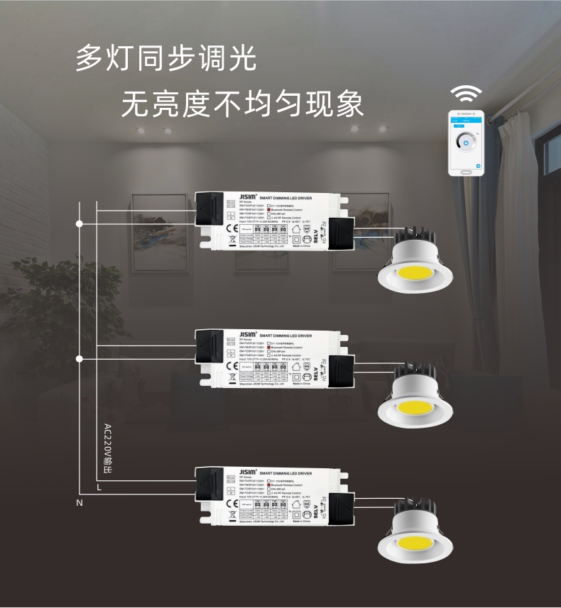 1.亮度控制,支持蓝牙Mesh组网、App调光、场景面板控制;